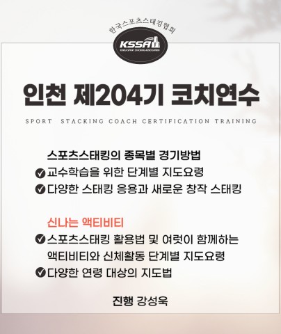 [인천] 제204기 스포츠스태킹 코치 민간자격연수