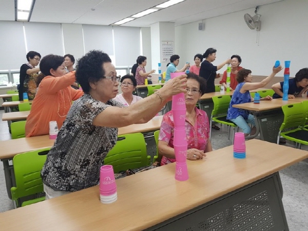이 날 복지관 회원 27명은 노년의 건강을 유지하기 위해 즐겁게 참여하면서 “처음에는 어려웠지만 반복하다보니 금방 익숙해졌다”며 “가벼운 컵을 움직이면서 시간이 가는 줄도 모르게 재미있었다. 앞으로 더 즐겁게 참여할 수 있을 것”이라고 말했다.