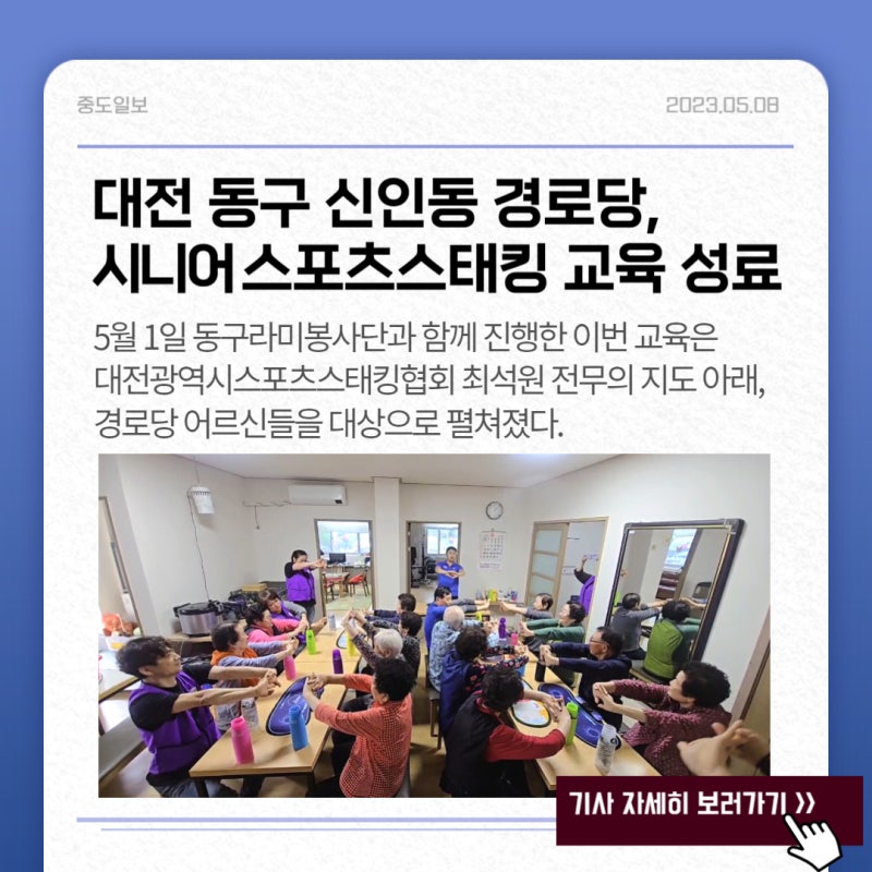 매스컴 보도 [중도일보] 대전 동구 신인동 경로당, 시니어 스포츠스태킹 교육 성료