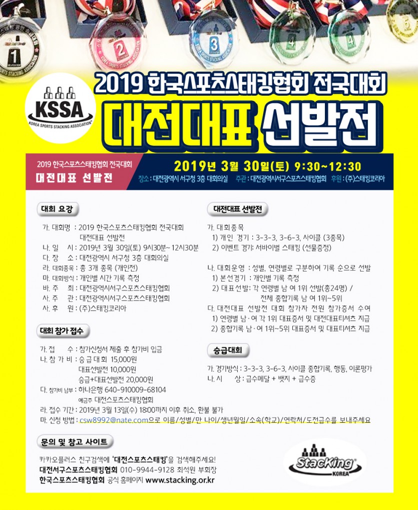 대회안내 2019 대전대표선발전 및 승급대회 (2019.03.30) 페이지 정보 작성자 한국스포츠스태킹협회 댓글 0건 조회 3,722회 2019 한국스포츠스태킹협회 스포츠스태킹 대전대표 선발전 및 승급대회 목록 이전글오정보건센터, 재가노인 스포츠스태킹 교실 운영[위키트리] 19.01.18 다음글2019 대구대표선발전 및 승급대회 (2/17) 19.01.17 댓글목록 댓글목록 등록된 댓글이 없습니다.