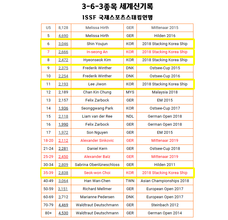 작성자 한국스포츠스태킹협회 댓글 0건 조회 4,026회최석원 35-39세 3-6-3종목 ISSF 세계신기록 수립! (2,838초)
