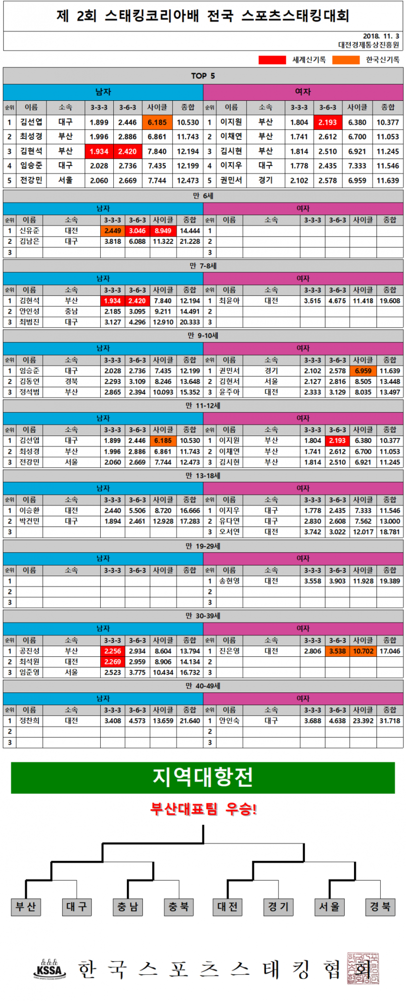 대 상: 지역대표선수, 제2회 한국스포츠스태킹협회장배 대회 조별 1위 우승자