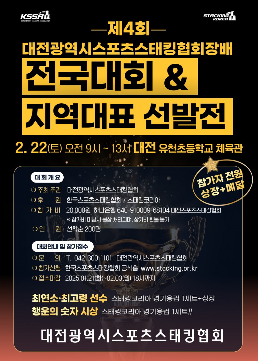 제4회 대전광역시스포츠스태킹협회장배 전국대회 & 지역대표 선발전 페이지 정보 작성자 한국스포츠스태킹협회 댓글 0건 조회 1,081회 작성일 25-01-31 11:09 제4회 대전광역시스포츠스태킹협회장배 전국대회 & 지역대표 선발전 목록 이전글제3회 동구스포츠스태킹협회장배 전국대회& KSSA 국가대표 1차 선발전 25.02.25 다음글제1회 창원협회장배 컵쌓기달인김태영컵 전국대회 24.12.29 댓글목록 댓글목록 등록된 댓글이 없습니다.